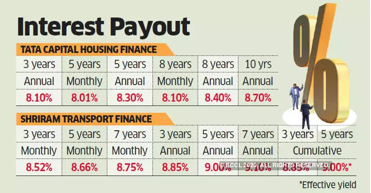 इसके विपरीत, टाटा कैपिटल हाउसिंग क्रमश: 8.1, 8.3 प्रतिशत, 8.4 प्रतिशत और 8.7 प्रतिशत की ब्याज दरों का भुगतान करते हुए तीन, पांच, आठ और 10 वर्षों के कार्यकाल प्रदान करता है। जबकि तीन और आठ साल के बीच के कार्यकाल के एनसीडी सुरक्षित हैं, 10 साल का साधन असुरक्षित है।