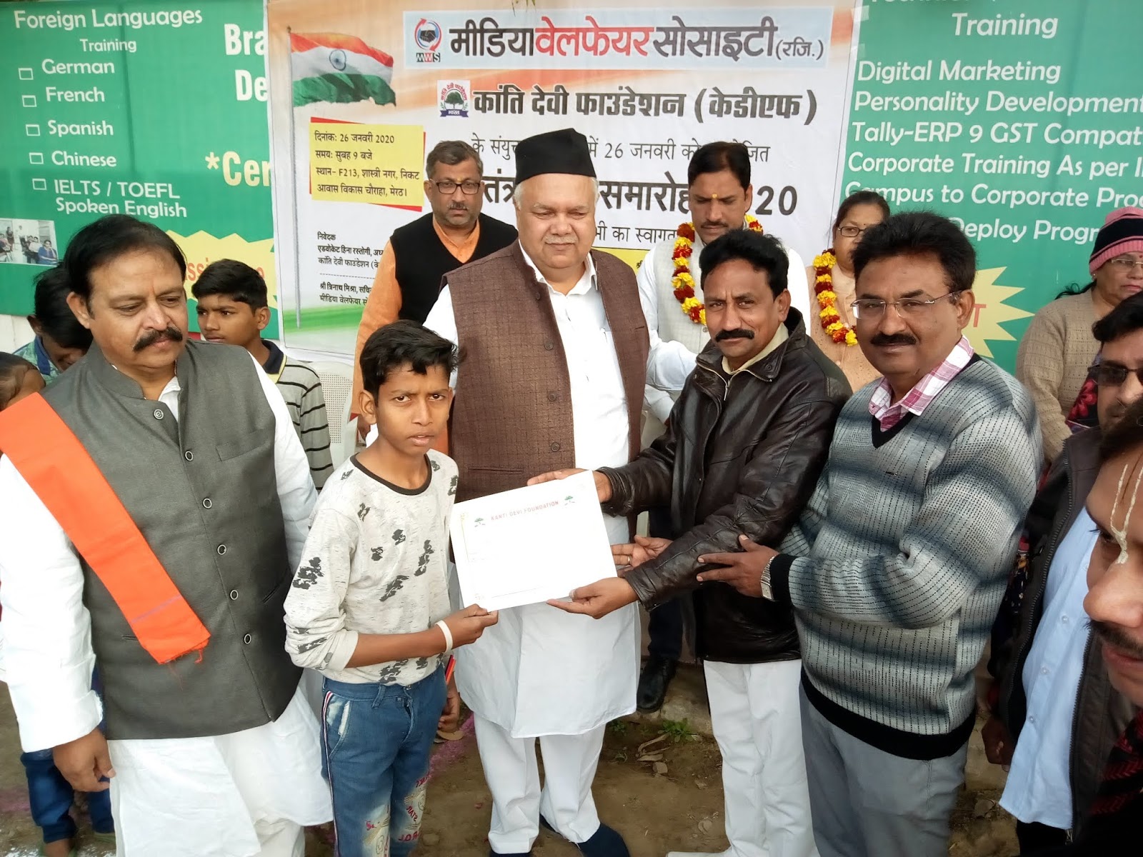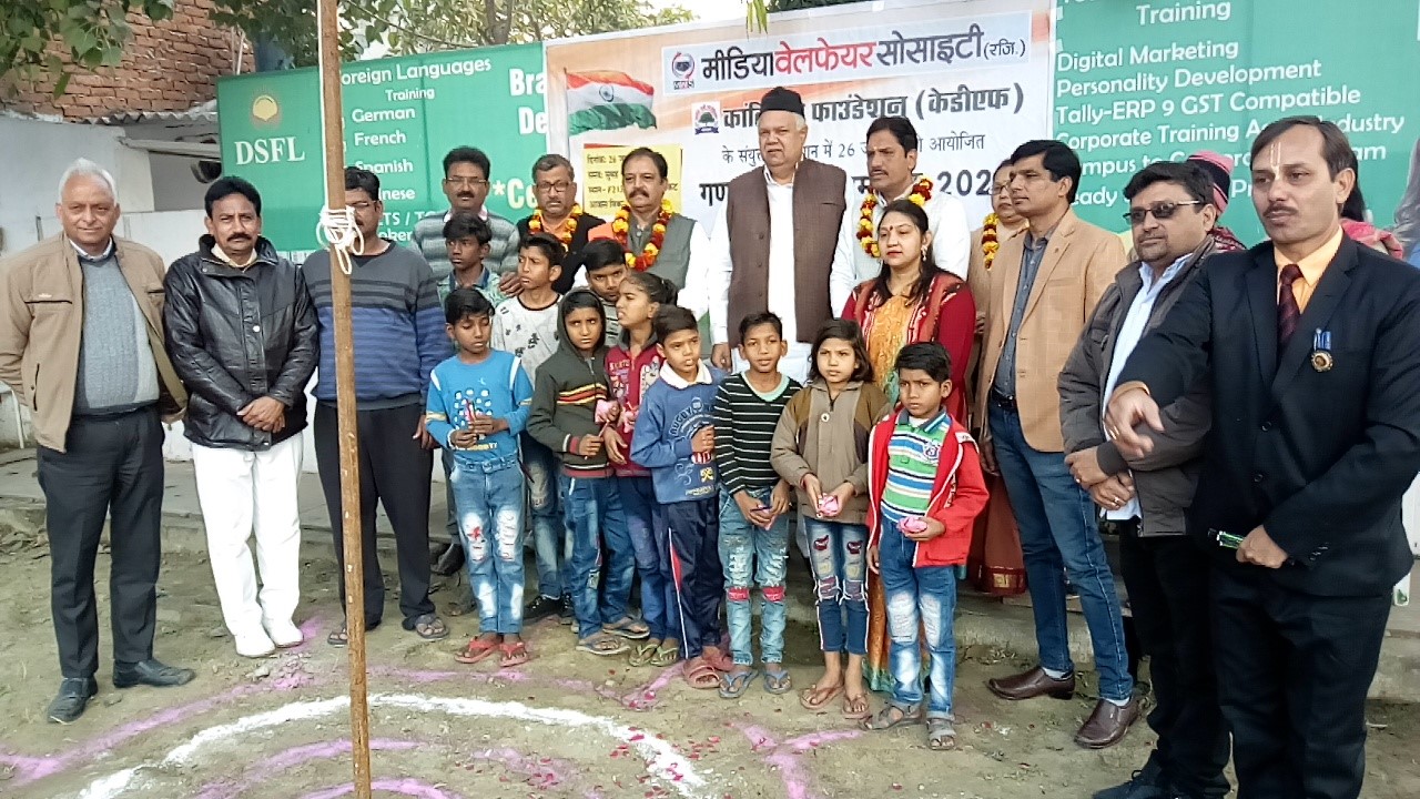 देश के राष्ट्रीय पर्व के पावन अवसर पर मीडिया वेलफेयर सोसायटी और पर्यावरण संरक्षक संस्था कांति देवी फाउंडेशन(केडीएफ) के संयुक्त तत्वावधान में गणतंत्र दिवस समारोह का आयोजन बहुत धूमधाम के साथ किया गया। इस कार्यक्रम में झुग्गी और स्लम एरिया के 50 से अधिक बच्चों ने भाग लिया।