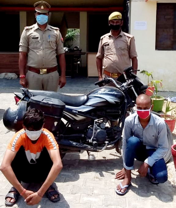 पुलिस ने पकड़े 2 शातिर चोर, चोरी की मोटरसाइकिल सहित अवैध चाकू बरामद