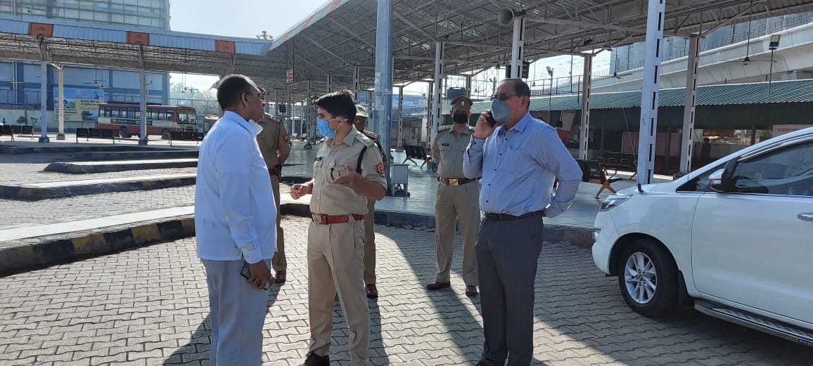 गाज़ियाबाद। COVID-19 (कोरोना वायरस) लॉकडाउन के दौरान डीएम अजय शंकर पांडे और एसएसपी कलानिधि नैथानी ने जनपद के बॉर्डर के विभिन्न स्थानों जैसे कि आनंद विहार, कौशांबी बस स्टैंड, यूपी गेट व अन्य महत्वपूर्ण स्थानों आदि का जायजा लिया हैं। एसएसपी कलानिधि नैथानी ने ड्यूटी पर मौजूद मिले पुलिसकर्मियों को सजग रहते हुए संक्रमण से खुद के बचाव रखने के लिए सैनिटाइजर एवं साबुन से लगातार हाथ धोने ग्लव्स व मास्क आदि लगाने को लेकर निर्देशित किया गया। एसएसपी ने कहा कि सभी आवश्यक वस्तुओं एवं सेवाओं के व्यक्तियों व वाहनों को न रोके जाने के निर्देश दिए हैं।