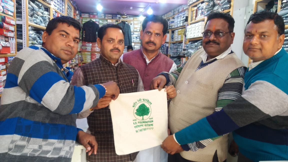उसके बाद सोमवार को पश्चिम में यूपी का आखिरी जिला बिजनौर में प्लास्टिक मुक्त भारत के लिए केडीएफ के कपड़ों के 100 से थैलों का वितरण खुद देश के जाने माने प्रकांड ज्योतिषाचार्य और केडीएफ संरक्षक पंडित अमित कुमार शांडिल्य ने किया।