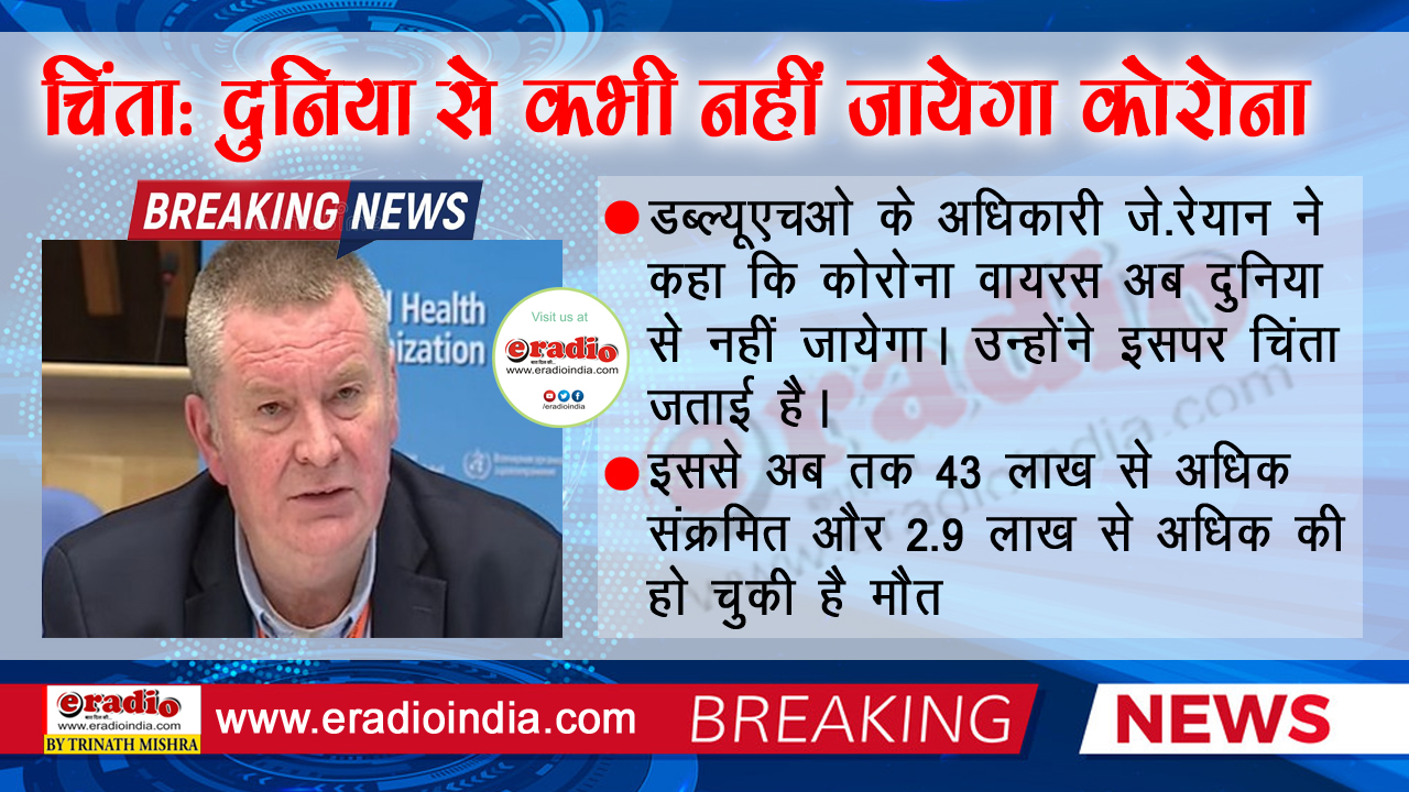 विश्व स्वास्थ्य संगठन (WHO) के वरिष्ठ अधिकारी माइकल जे रेयान ने बुधवार को एक बड़ा बयान देकर सबको चौंका दिया। उन्होंने कहा कि कोरोना वायरस अब दुनिया से कभी नहीं जायेगा। यहके उन वायरस के जैसा हो सकता है, जो यहीं पर अपना डेरा जमायेगा।