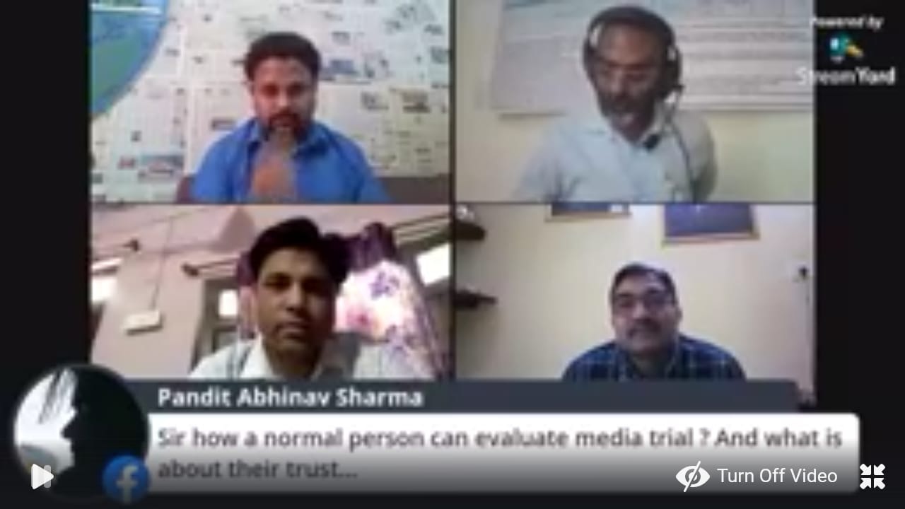 इस राष्ट्रीय वेबीनार के मुख्य अतिथि डाॅ0 उदय शंकर जी ने बताया कि जब व्यवस्थापिका निष्क्रिय हो जाती है या व्यवस्था करने में असफल हो जाती है, तब ऐसी संस्थाओं की निष्क्रियता खत्म करने के लिए मीडिया को एक सकारात्मक एवं सक्रिय भूमिका निभानी पड़ती है, यह सक्रियता या अवधारणा ही मीडिया ट्रायल कहलाती है, दुनिया भर में हुए आंदोलनों में मीडिया की भूमिका महत्वपूर्ण है। किसी भी खास मामले में हुए भ्रष्टाचार की जानकारी आम आदमी तक मीडिया के जरिए ही पहुँचती है।