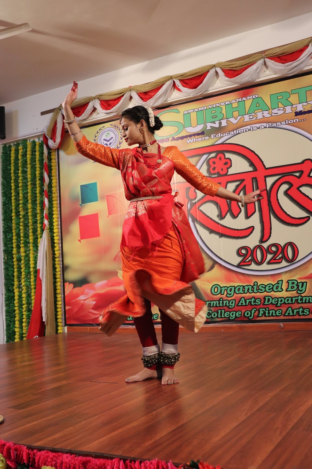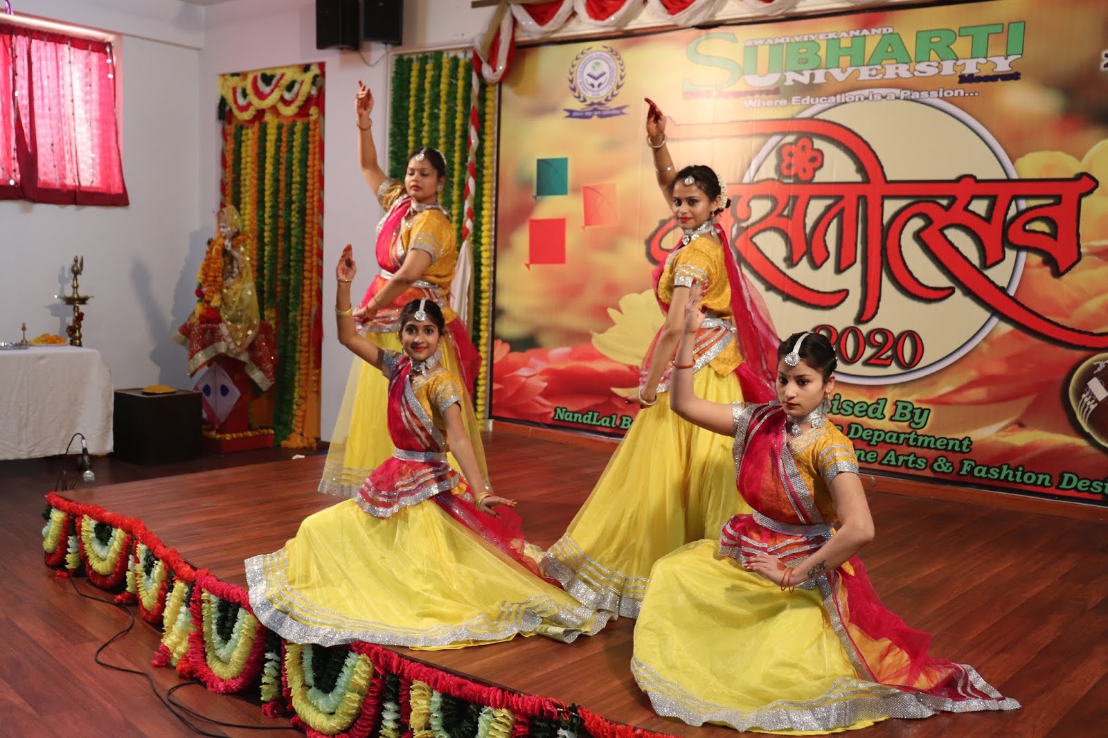 | बसंतोत्सव में नृत्य की प्रस्तुति देती छात्रायें। |