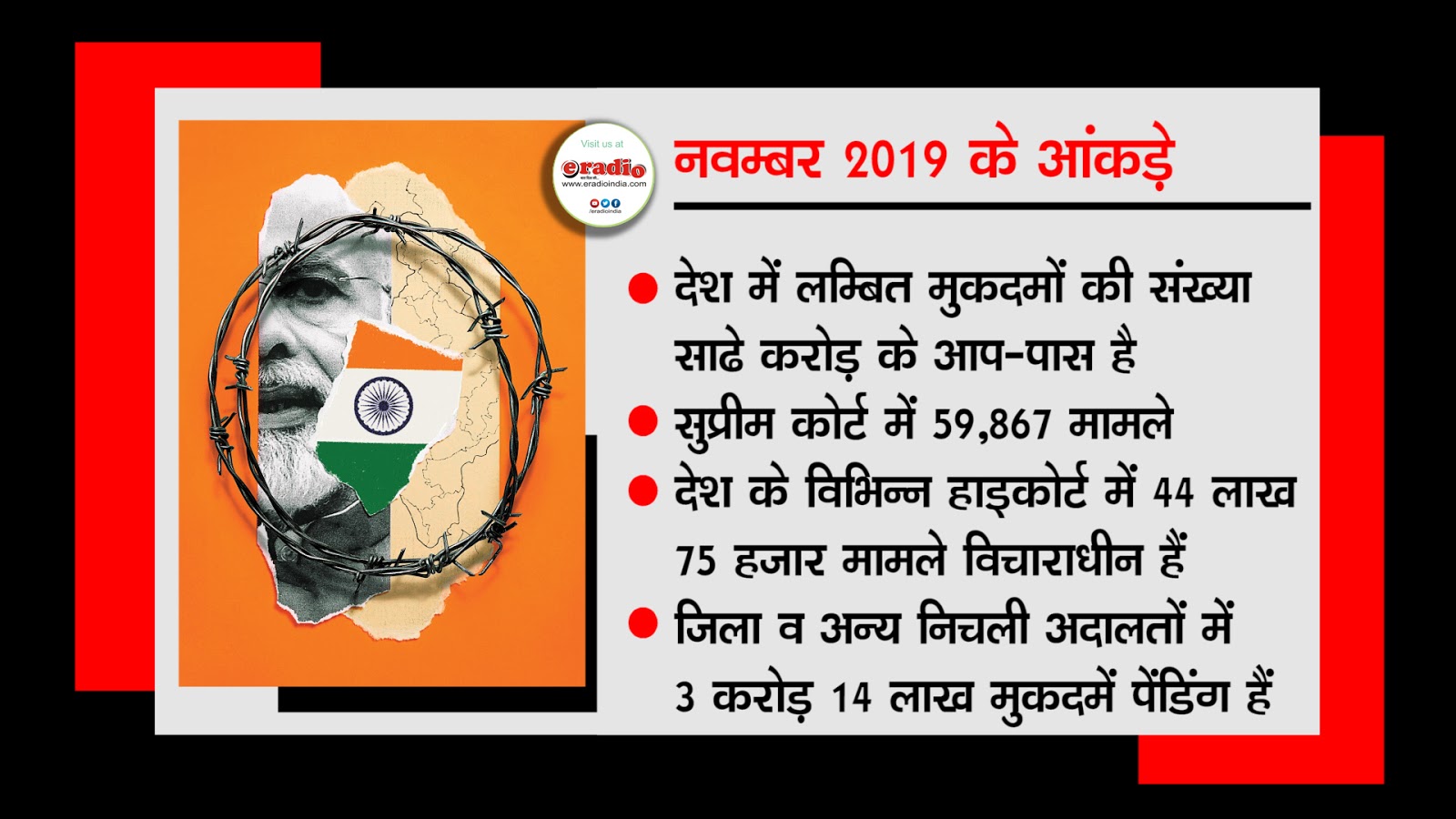 मेरठ। देश में मुकदमों की संख्या दिन ब दिन बढ़ती जा रही है…. ऐसे में न्याय की उम्मीदों पर बड़ा ब्रेक लग गया है… नवम्बर 2019 के आकड़ों पर नजर डालें तो पता चलता है कि पूरे देश में लम्बित मुकदमों की संख्या लगभग साढ़े तीन करोड़ है… इनमें सुप्रीम कोर्ट में 59,867 मामले लम्बित हैं तो वहीं देश के विभिन्न हाइकोर्ट में 44 लाख 75 हजार मामले विचाराधीन हैं। इसके अलावा जिला व अन्य निचली अदालतों की बात करें तो तकरीबन 3 करोड़ 14 लाख मुकदमें पेंडिंग हैं।